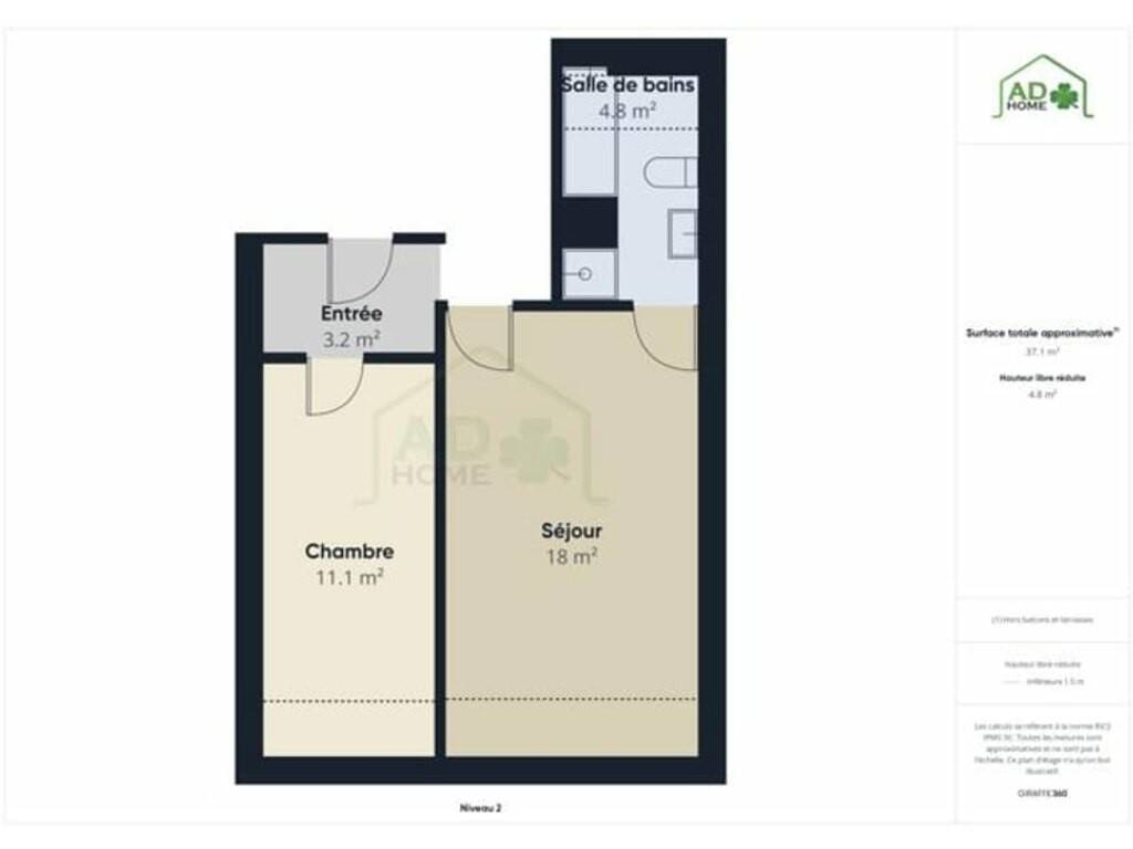 Enfin, le quatrième studio, situé au dernier étage, se compose d’un hall d’entrée distribuant une chambre, une cuisine, un séjour et une salle de bain.
