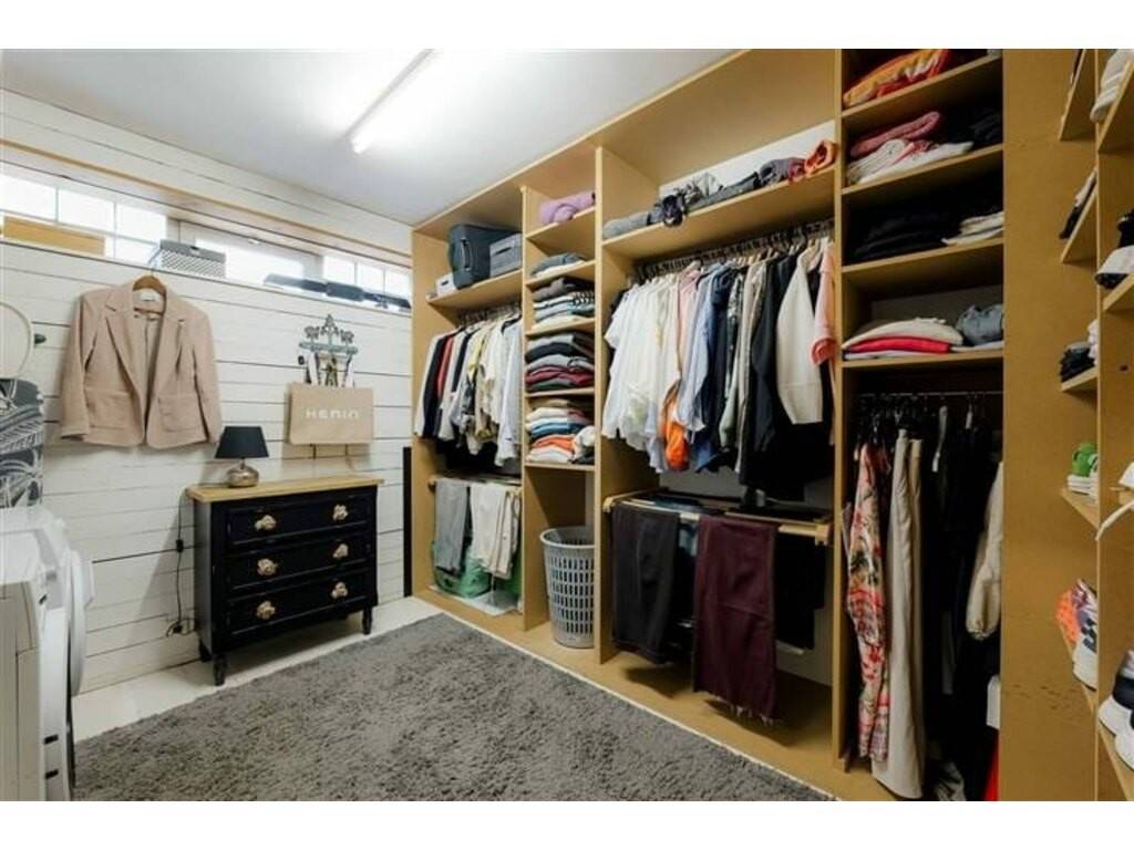 La maison dispose également d’un garage avec porte sectionnelle motorisée et d’une cuisine d’appoint pratique.