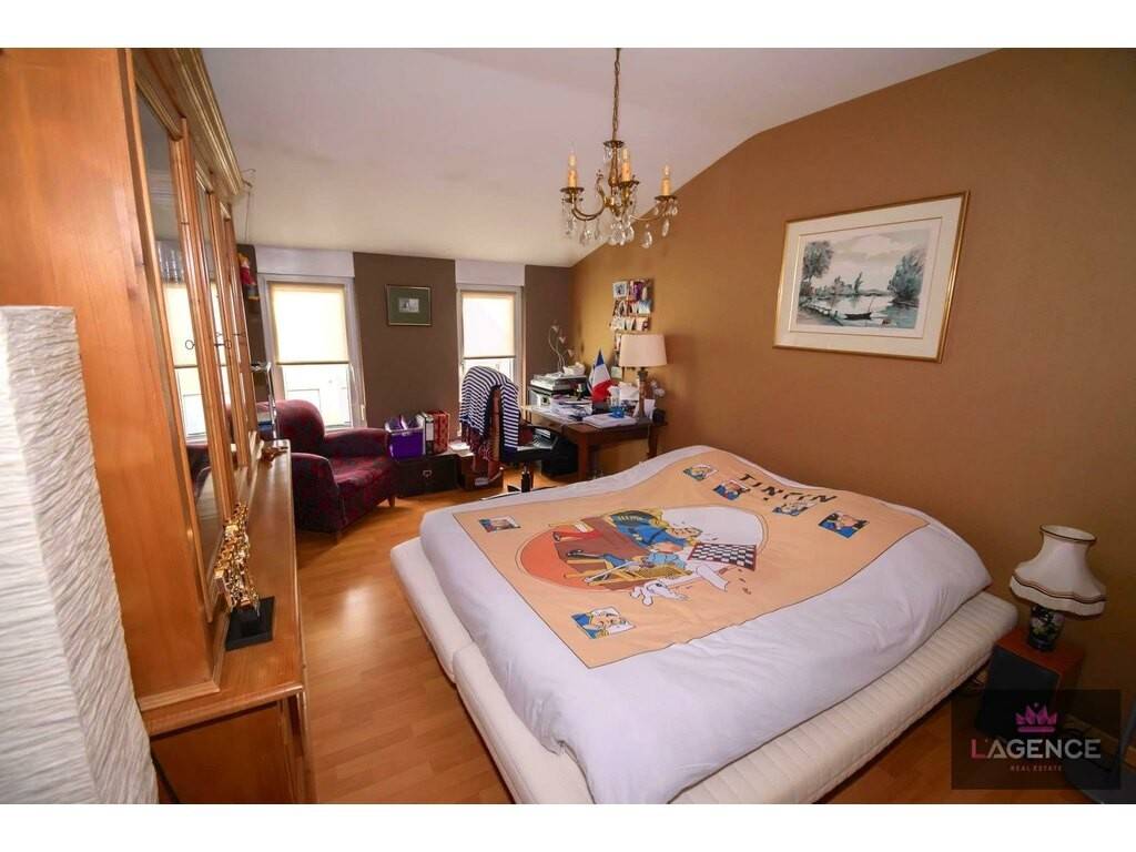 À l'étage, nous arrivons sur l'espace mezzanine qui offre une belle vue sur la pièce de vie se trouvant au Rdc et qui dessert surtout les 3 dernières chambres de belles superficies disposant de dressings intégrés pour 2 d'entre elles. Nous trouvons également une salle d'eau équipée, ainsi qu'une pièce grenier de 42m² environ au sol.