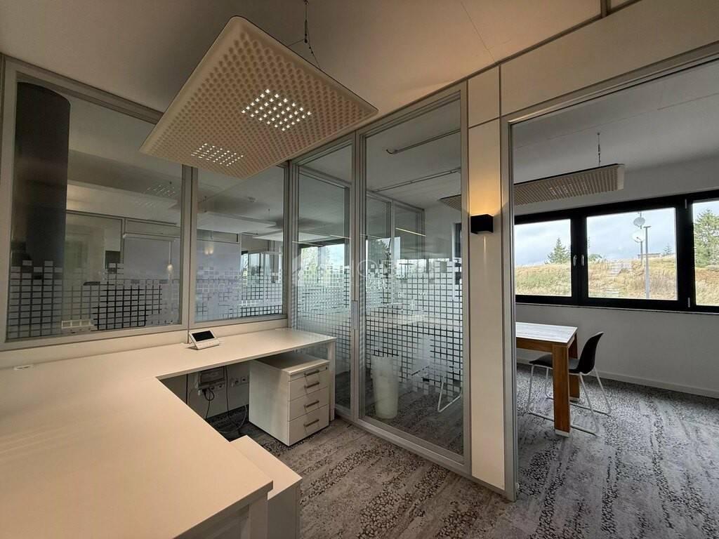 - Surface totale : environ 210 m - Peut accueillir jusqu'à 25 postes de travail - Entièrement meublé – mobilier de bureau moderne et fonctionnel inclus - De grandes baies vitrées à triple vitrage et cadres en aluminium garantissent des espaces de travail lumineux et agréables - Chauffage au plafond avec géothermie – approvisionnement en chaleur efficace et durable - Stores pour une protection solaire optimale - Connexion fibre optique – infrastructure numérique parfaite - Ascenseur et accès sans barrières - Éclairage extérieur tout autour du bâtiment