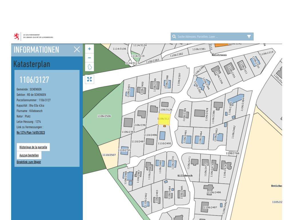 Location and Surroundings (Killeboesch) The plot is situated on Rue Killeboesch, a quiet residential neighborhood in Schengen.