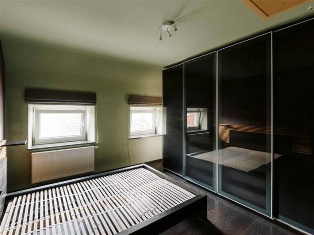 L'étage supérieur dévoile un spacieux salon de 26m2 baigné de lumière naturelle grâce à de larges fenêtres, complété par des étagères intégrées qui optimisent le rangement. La chambre à coucher, située au dernier étage, offre un cadre serein avec de grands placards pour un rangement optimal.