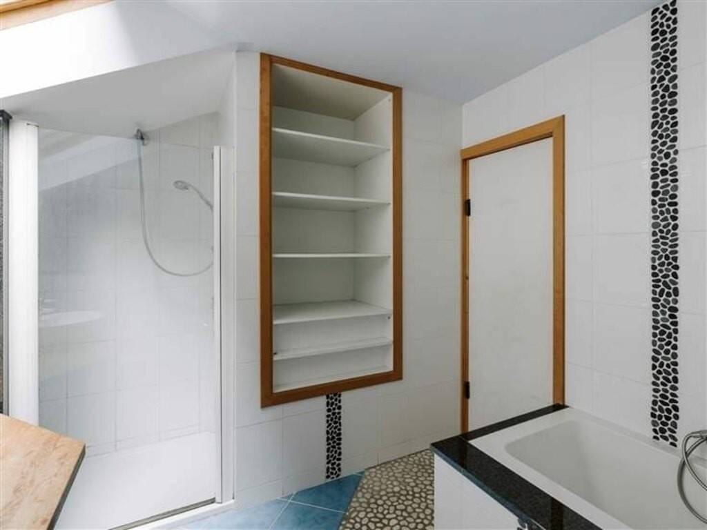 La salle de bains, dotée d'un puits de lumière, est équipée d'une baignoire et d'une douche séparée.