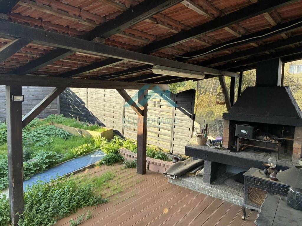 Dans le jardin : une terrasse couverte avec barbecue ainsi qu’un puits.
