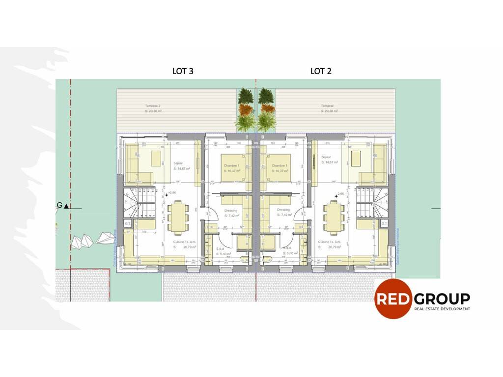 Sur un terrain d'une superficie de 4,15 ares Maison Jumelée - Variante Prix Gros Oeuvre Fermé