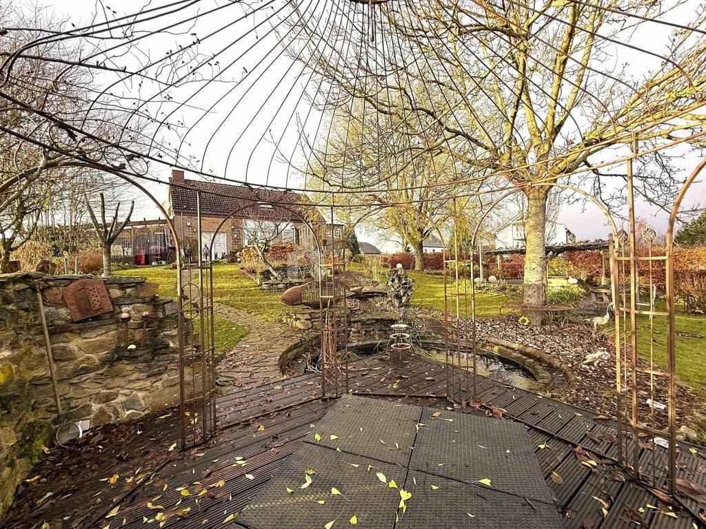 joli jardin grande pergola étang idyllique plusieurs coins salon confortables Véranda avec four à pizza Abri de jardin