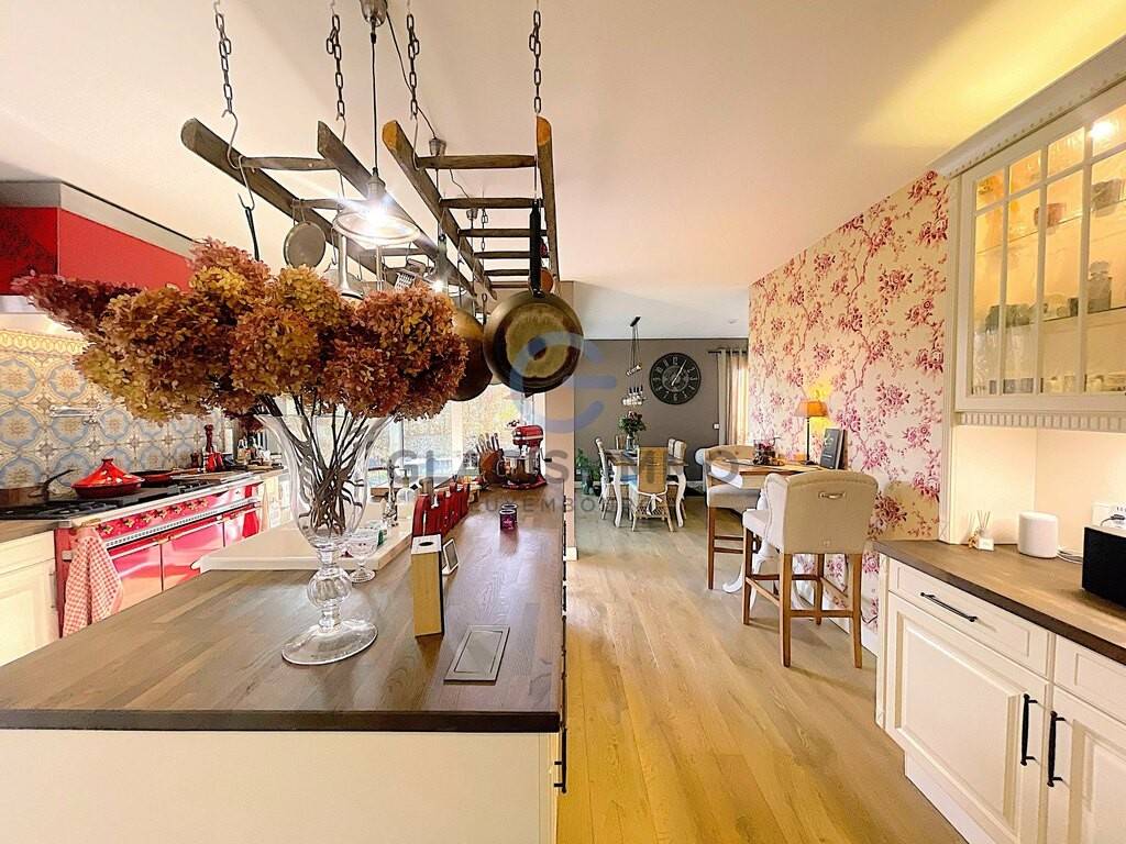 - d’une cuisine ouverte semi-professionnelle, entièrement équipée (piano gaz 5 feux, double four, cave à vin, frigo, congélateur, grand îlot central, nombreux rangements) idéale pour recevoir en toute convivialité