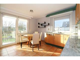 Rez-de-chaussée : hall d'entrée, WC séparé, débarras, salon, cuisine équipée séparée avec balcon, chambre à coucher avec salle de douche attenante, chambre/bureau