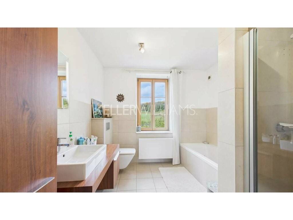 The large enclosed and landscaped garden, together with a 40 m² panoramic terrace, offers breathtaking views over the park and the Malbrouck Castle, making this property a rare find on the local market.