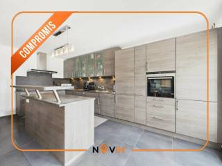 Entrance hall – Spacious 45 m² living room with fully equipped kitchen opening onto a terrace with an open view – Three lovely bedrooms, one of which is 20 m² – Bathroom with both shower and bathtub – Separate toilet – Cellar – Tandem garage that can accommodate two cars and a motorcycle.