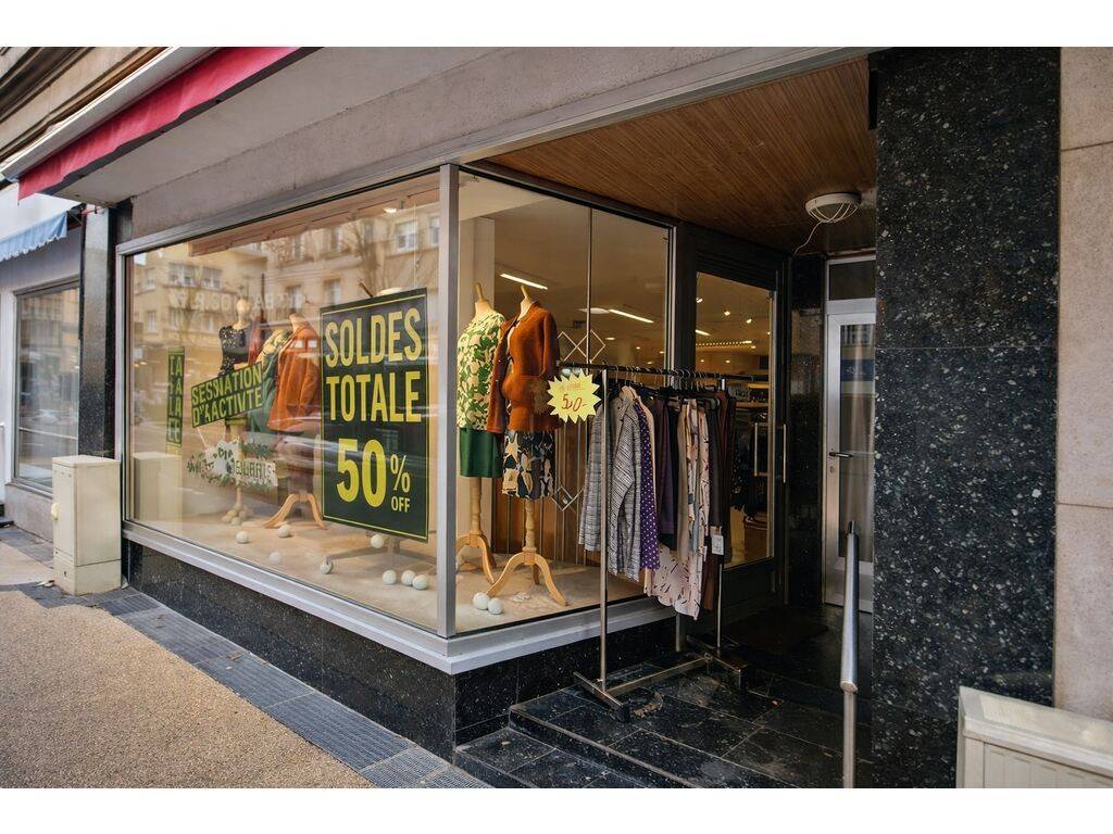 Local commercial avec 78 m² de surface de vente et une grande vitrine, ainsi qu’un petit bureau ;