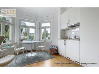 Studio for rent in a renovated old villa (end 2023) in Lorentzweiler (97, Route de Luxembourg), with large windows and lots of natural light. It is located on the second floor (with elevator). Residents (13 units) also have access to a terrace, a large garden and a shared double living room.
