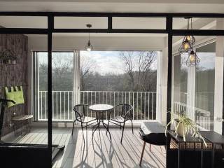 Il se compose d’une belle pièce de vie d'environ 32 m² avec cuisine ouverte. Depuis le salon, vous accédez à une loggia d'environ 7 m² (surface non comprise dans la surface habitable), équipée de baies vitrée coulissantes, offrant une vue dégagée sans vis-à-vis sur de la verdure. Deux chambres, une salle de bain avec baignoire et douche, un WC séparé.