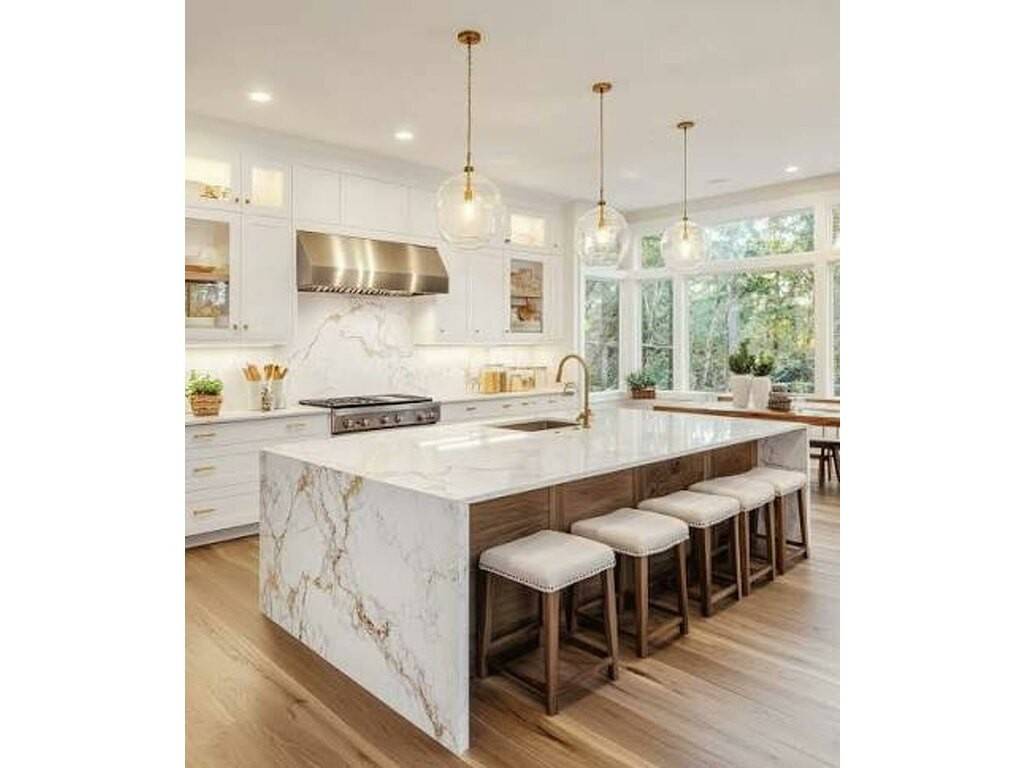 Dès l'entrée, la lumière naturelle traverse la maison grâce à de grandes baies vitrées orientées plein sud, révélant un espace de vie d'environ 100 m² combinant un salon spacieux, une salle à manger élégante et une cuisine ouverte haut de gamme avec îlot central et électroménager encastré dernière génération.