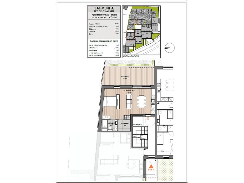 A bright apartment (A1) with a living area of +/- 65 m2, a terrace of +/- 10m2 and a private garden of 12m2.