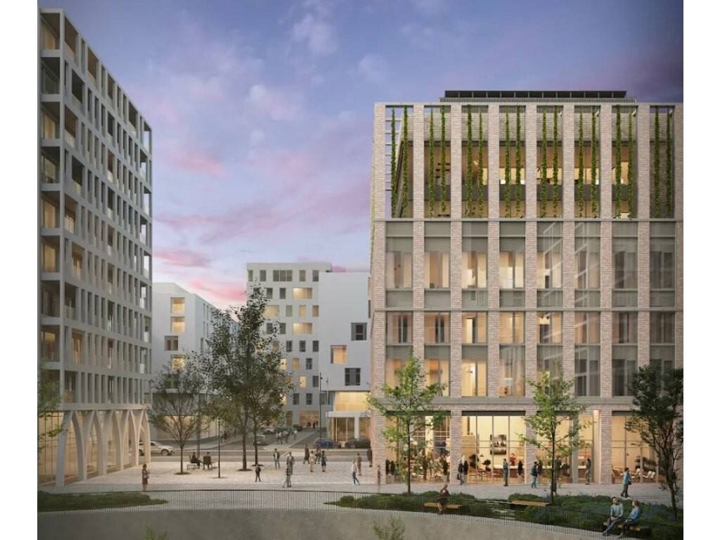 The AAA energy class building will be equipped with high-performance frames and glazing, a new generation solar panel roof, an urban farm, and a rainwater recycling system.