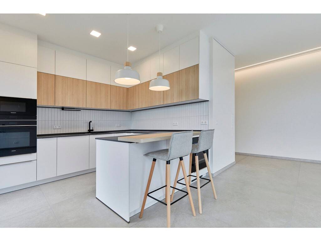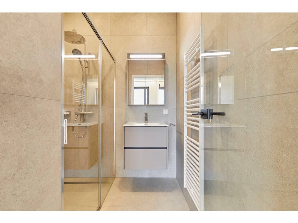 This beautiful first-floor apartment offers a harmonious and functional layout. It features an entrance hall with bespoke built-in storage, a separate guest toilet, and a bright living area opening onto two terraces of 29 sqm and 11 sqm. The fully equipped kitchen includes a bar area with stools, a wine fridge, and an induction cooktop with integrated extractor hood.