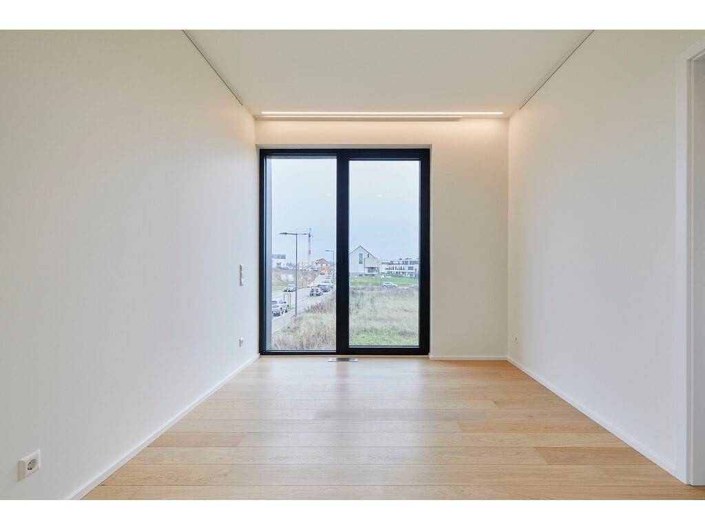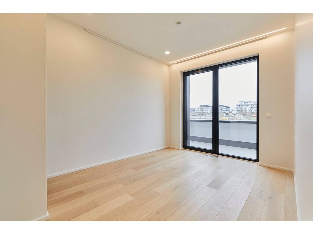 The sleeping area consists of two bedrooms, each with custom-made storage, an en-suite bathroom, and access to a third balcony of 9 sqm. A third bedroom, which may also be used as a home office, completes the property.