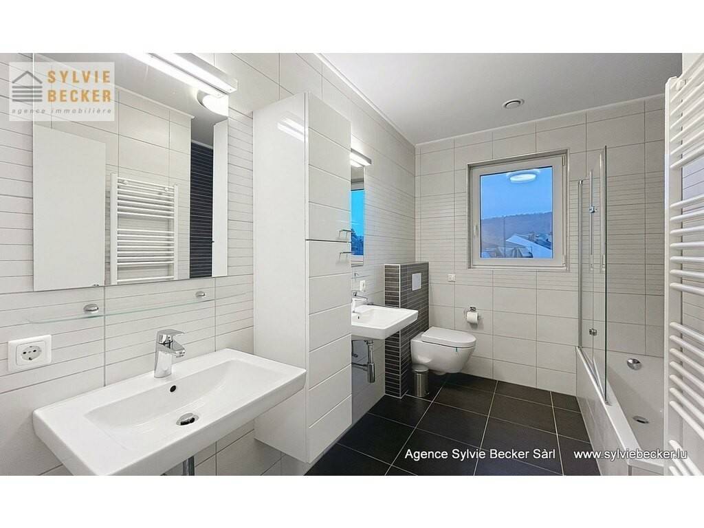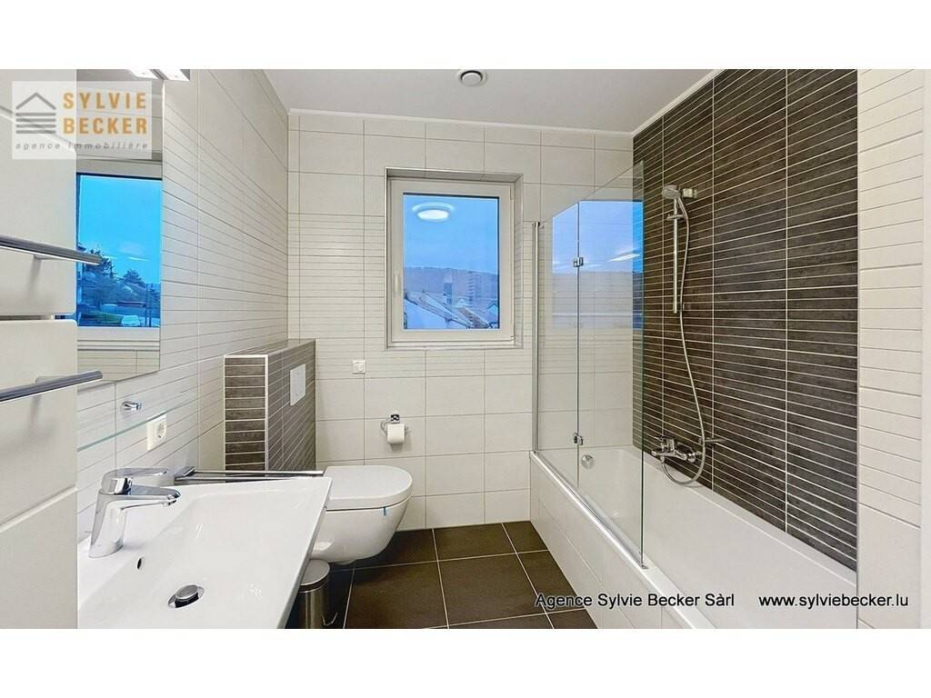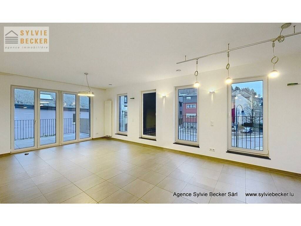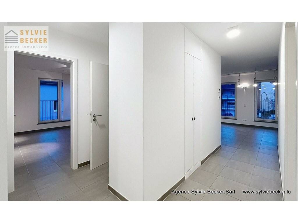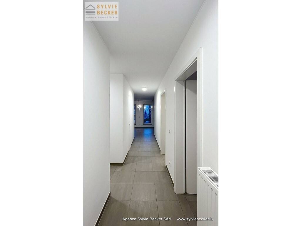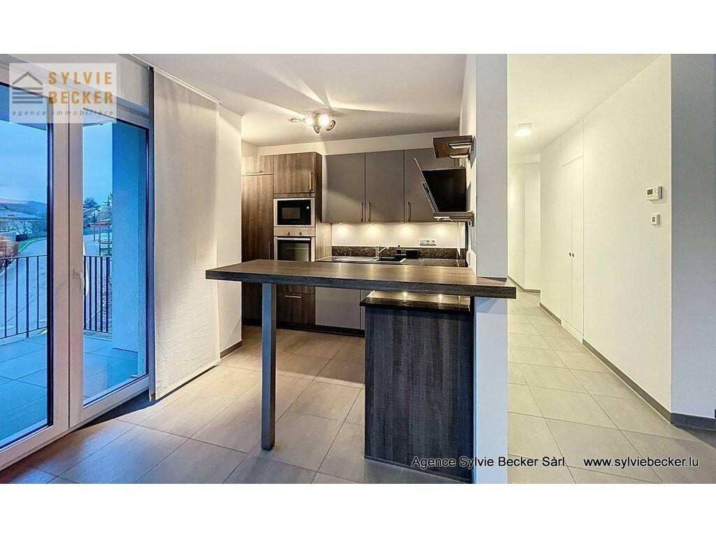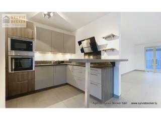 Beautiful, bright apartment with a total surface area of 94 m2, comprising two bedrooms, a living room opening onto 2 beautiful terraces, open-plan fitted kitchen, 1 bathroom, 1 separate toilet, cellar and 2 parking spaces. The apartment is on the 1st floor of a residence with elevator at 50 Rte de Fischbach, Lintgen, ideally located near Mersch and the motorway network, 15 minutes from Kirchberg.