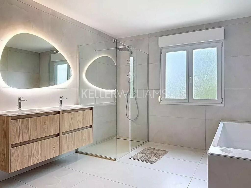 Vaste salon-séjour lumineux avec de grandes baies vitrées