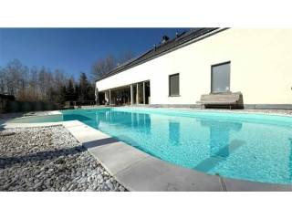 Cuisines équipées îlot central. Garage 3/4 voitures, parkings. Sous-sol +- 230m² pièces techniques, sdb. Rez, +- 230m² dont living 80m², 3ch dressings, sdb placards. Etage 1 +-230m² 2 apparts 2 ch. Chaudières, plomberie, électricité évacuations indépendantes Meubles, avec accès extérieur séparé, 2 sdb, cuisines.