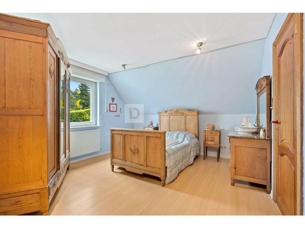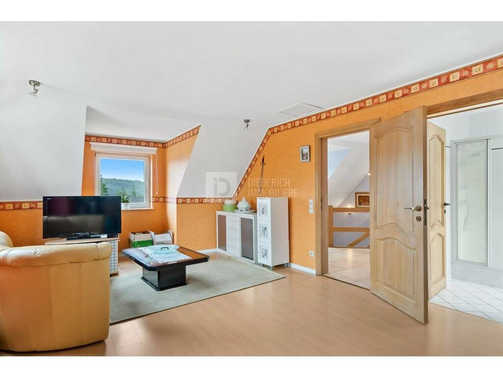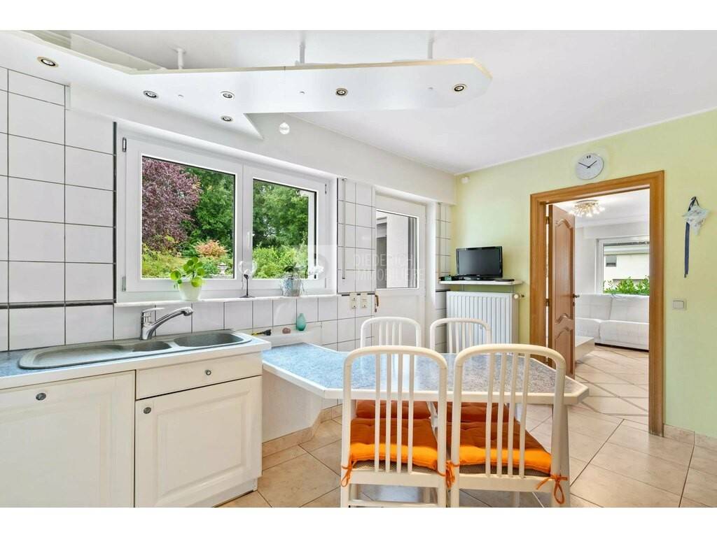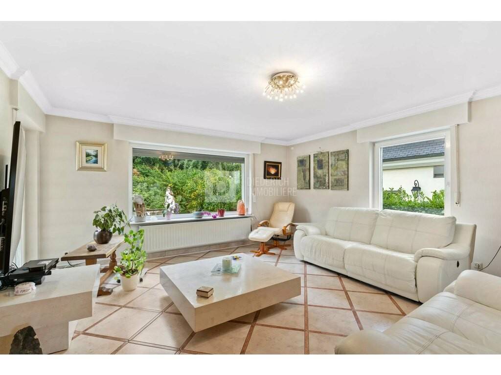 Immobilière Diederich is pleased to present this beautiful, four-sided, detached house built in 1994, ideally located in the hills above Eischen. Set in a quiet, leafy environment, the property boasts an unobstructed, unobstructed view of the village, as well as a pleasant garden planted with trees that invites you to relax.