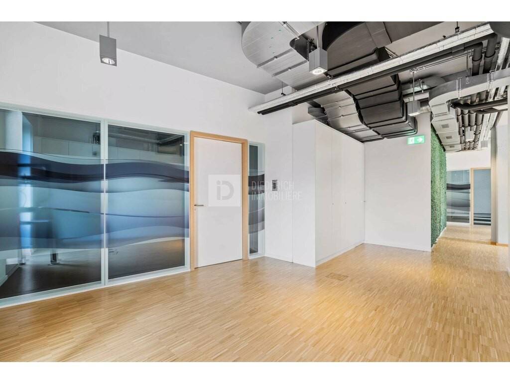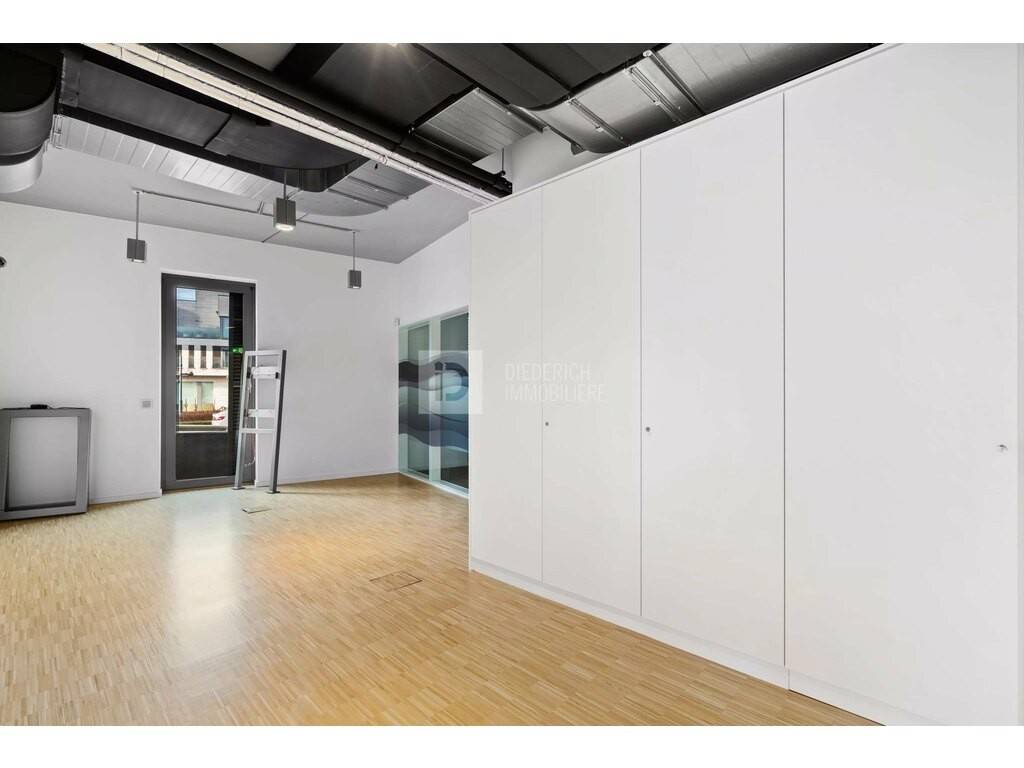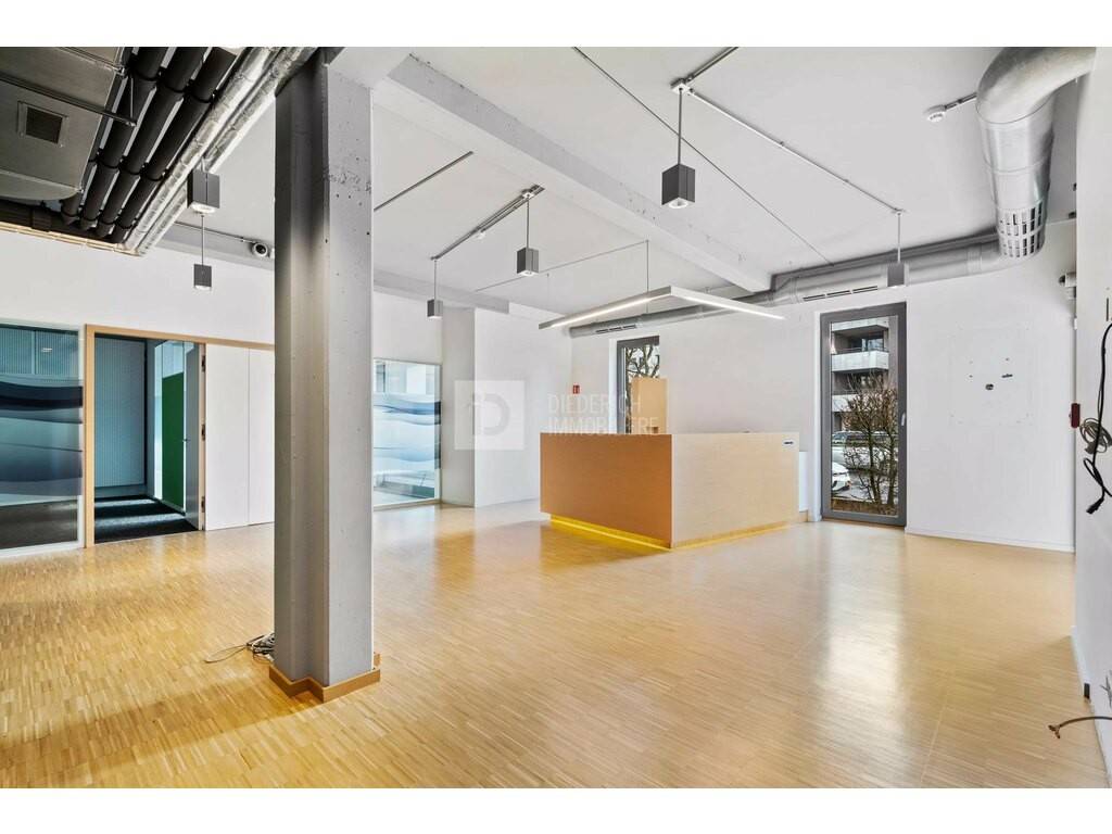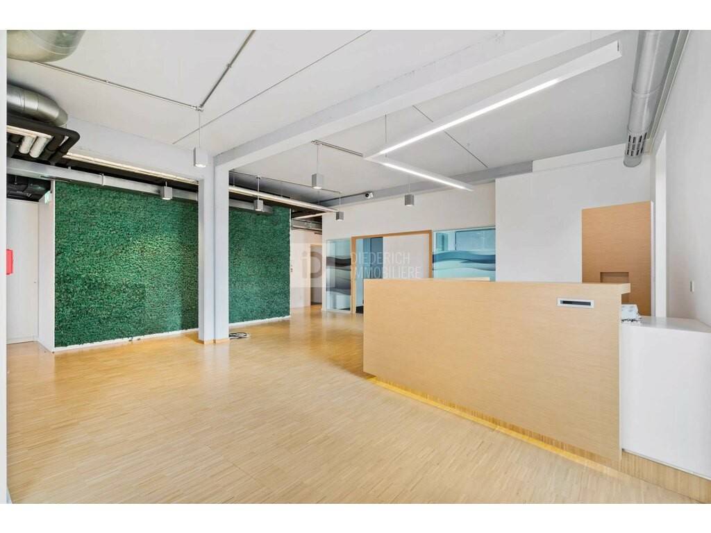 Son design contemporain, avec un parquet élégant, un éclairage architectural et une belle hauteur sous plafond, crée une atmosphère accueillante et professionnelle.