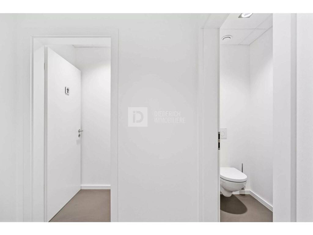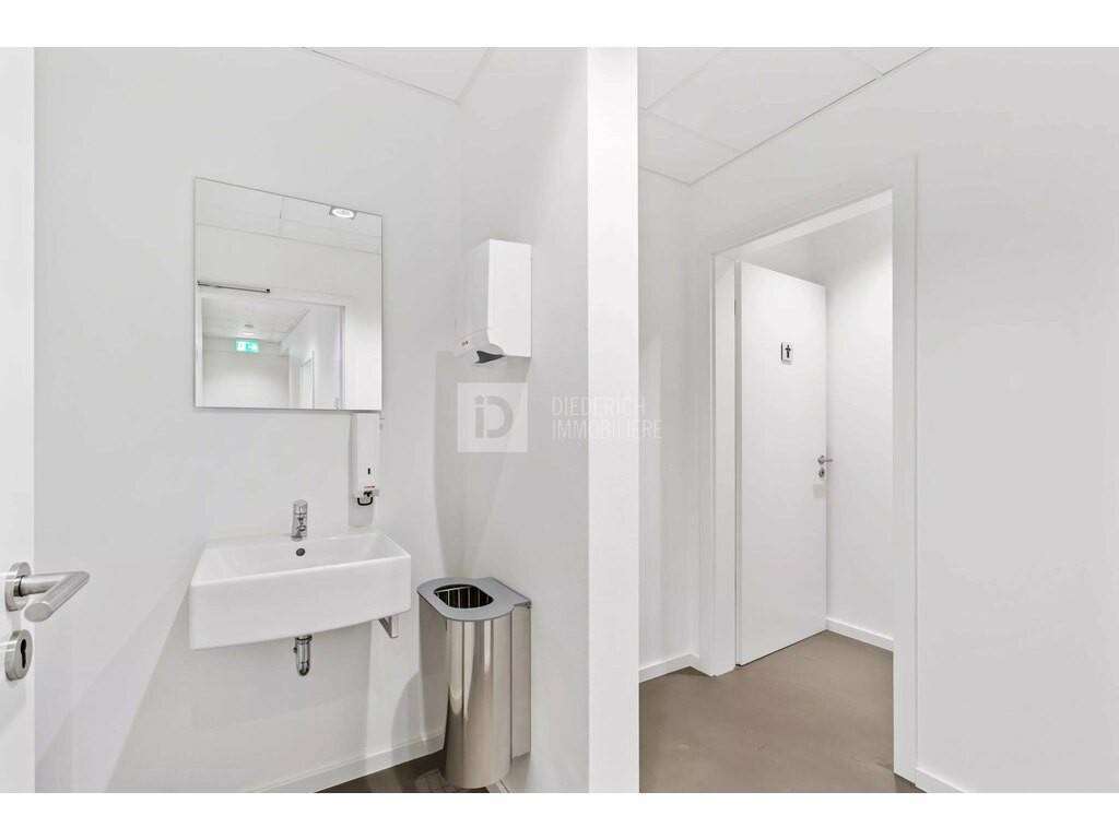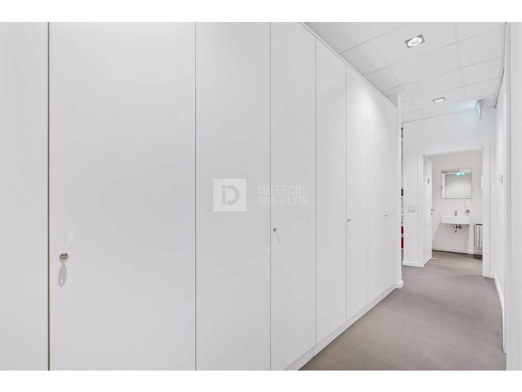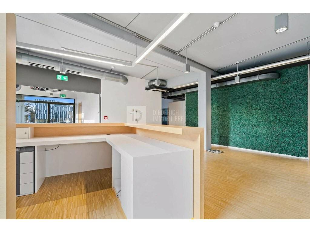 Son design contemporain, avec un parquet élégant, un éclairage architectural et une belle hauteur sous plafond, crée une atmosphère accueillante et professionnelle.
