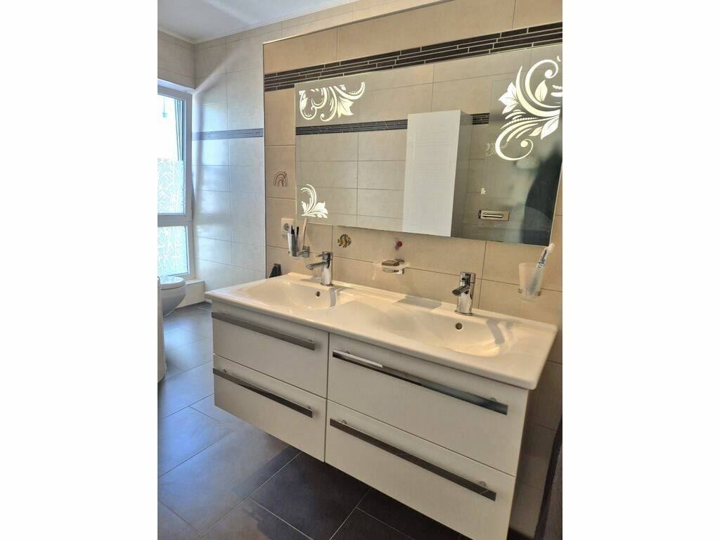 The ground floor includes a spacious garage (suitable for a large car), an additional storage room, as well as two private parking spaces in front of the house.