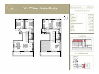 The Lot 5.01.DU4 duplex is located on the 6th and 7th floors and has a cadastral area of ±160.29m², a terrace of ±14.5m² and is composed as follows: