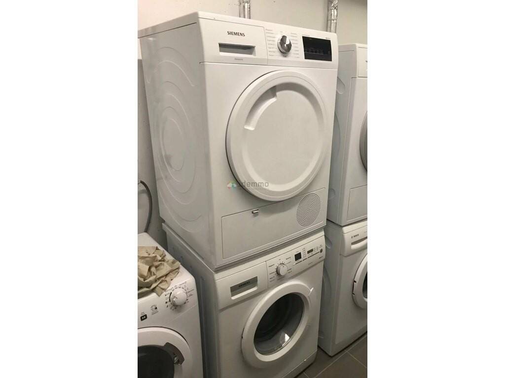 Une entrée avec armoire de rangement, une pièce de vie avec meubles, lit et canapé-lit, une cuisine équipée, une salle de douche avec WC, une buanderie avec lave-linge et sèche-linge.