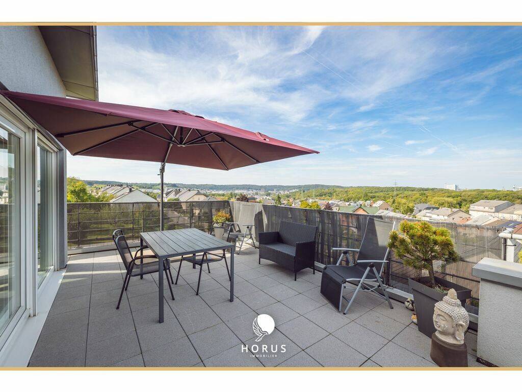 HORUS Immobilier exclusively offers for sale this penthouse of approximately 117m², spread over the 2nd and 3rd floors of a residence with 6 units in Soleuvre, benefiting from direct access via a private elevator and a 360° panoramic view, in absolute tranquility.