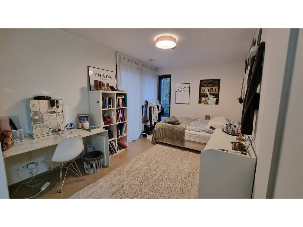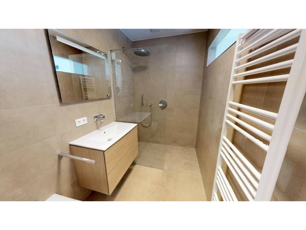 Les chambres sont équipées de placards encastrés et la chambre patronale dune salle de douche à litalienne. La salle de bain est composée d'un double lavabo, d'une baignoire encastrée, d'un bidet, WC et douche à litalienne. Un WC séparé avec fenêtre et un grand débarras complètent lappartement.
