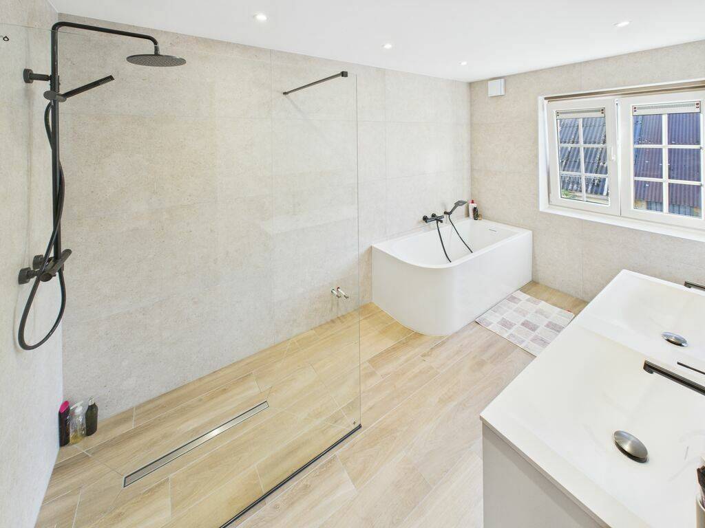 Vous êtes accueilli par un hall lumineux offrant un accès direct aux différentes pièces du rez-de-chaussée. Les matériaux sont sobres et faciles d'entretien, créant une atmosphère chaleureuse dès l'entrée.