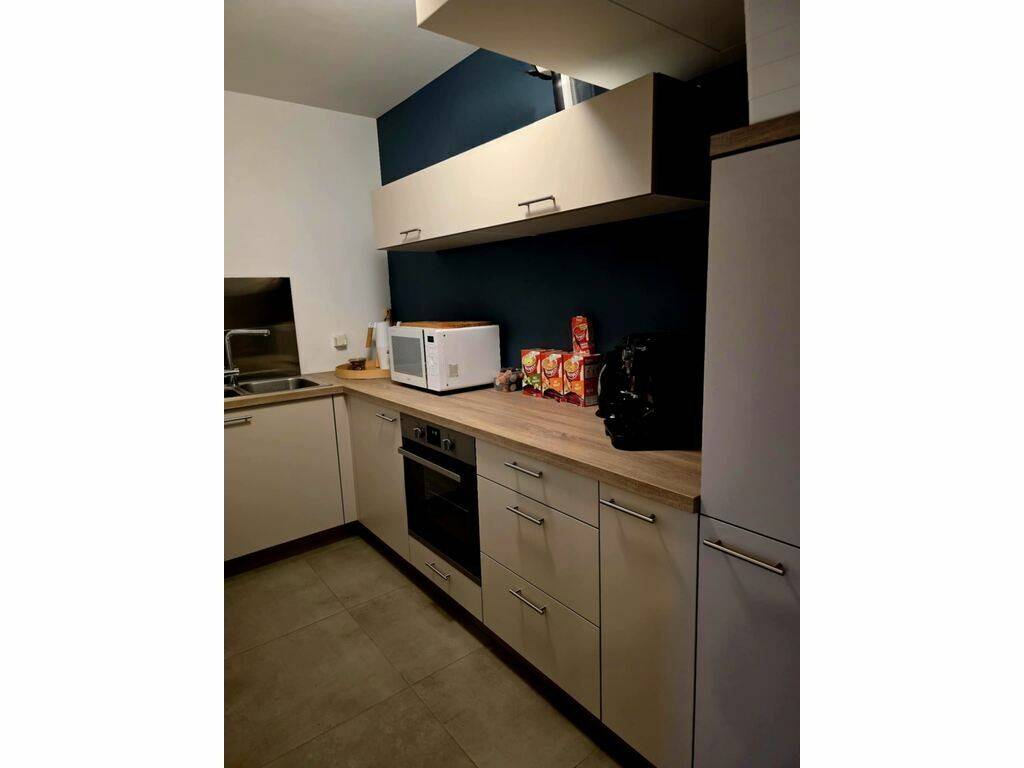 Cuisine entièrement équipée : micro-ondes, four, évier, machine à café