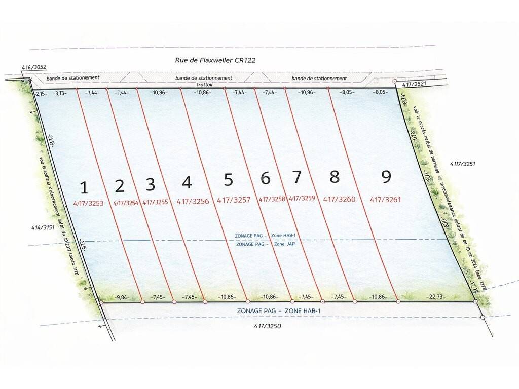 LOT1 - Le projet « Auf Pohfeleck » concerne exclusivement la vente de terrains à bâtir – sans contrat de construction. L'acquéreur reste totalement libre dans le choix de son entreprise de construction. Toutefois, les plans sont vendus avec les terrains. Le projet prévoit la construction de 9 maisons unifamiliales, dont une maison individuelle indépendante (LOT 9).