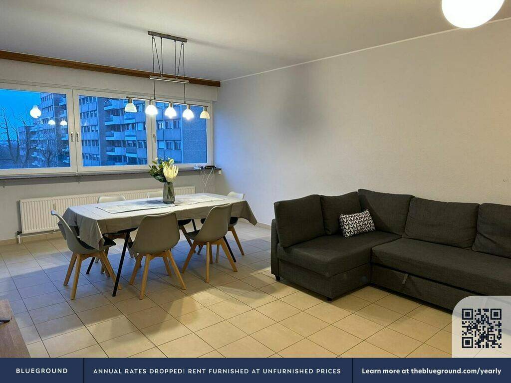 Feel at home in this very spacious 2-bedroom apartment located in the Kirchberg business district, just a short 10-minute journey to downtown Luxembourg. The apartment boasts a large living space, a separate fully equipped kitchen, and a small terrace offering panoramic views. It features two bedrooms, one with a king-size bed and the other with a double bed, as well as a sofa bed in the living room. The apartment also includes a separate toilet and a bathroom with a bathtub and shower. This apartment is ideal for both business travelers and tourists eager to explore the beautiful city of Luxembourg. The well-designed space includes a large living area and a separate fully equipped kitchen, perfect for preparing meals and enjoying the comforts of home. Baby chairs and cots are available free of charge on request. Cable TV is provided, and guests are encouraged to use guest profiles. Conveniently located in Luxembourg City, the apartment is just 5km from the airport and a 2-minute walk from Kirchberg. It's only 10 minutes by bus from the old town and is surrounded by amenities such as restaurants, Auchan Kirchberg Shopping Centre, Infinity Shopping Centre, and is within walking distance to Kirchberg Hospital, Kinepolis multiplex cinema, and La Coque sports centre, swimming pool, wellness, and sauna. Guests will have access to the entire apartment, which is not shared with others.