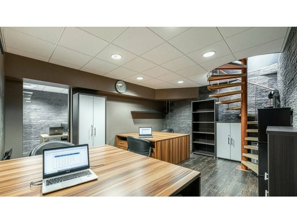 Le sous-sol aménagé se compose d’un espace open space fonctionnel et d’un bureau fermé offrant calme et confidentialité, complété par une salle de douche privative.