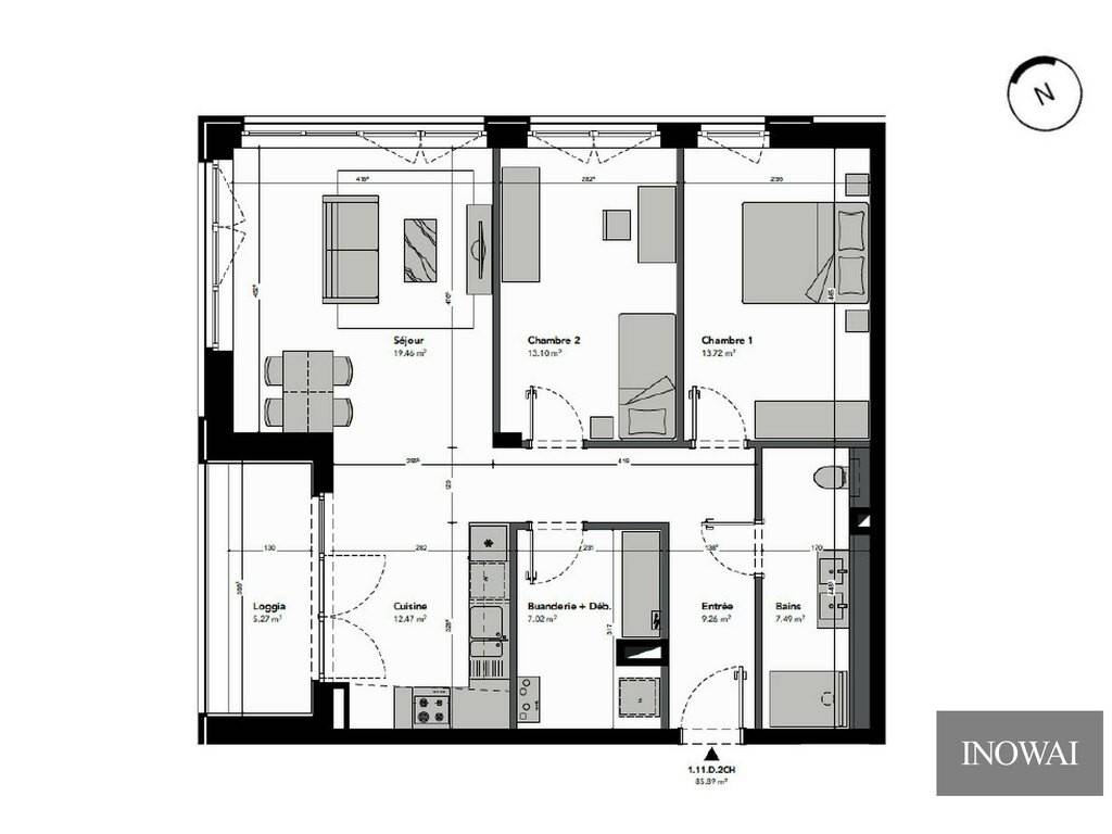 This lot 104 apartment on the second floor, with 89 m² of living space, offers two spacious, well-appointed bedrooms.