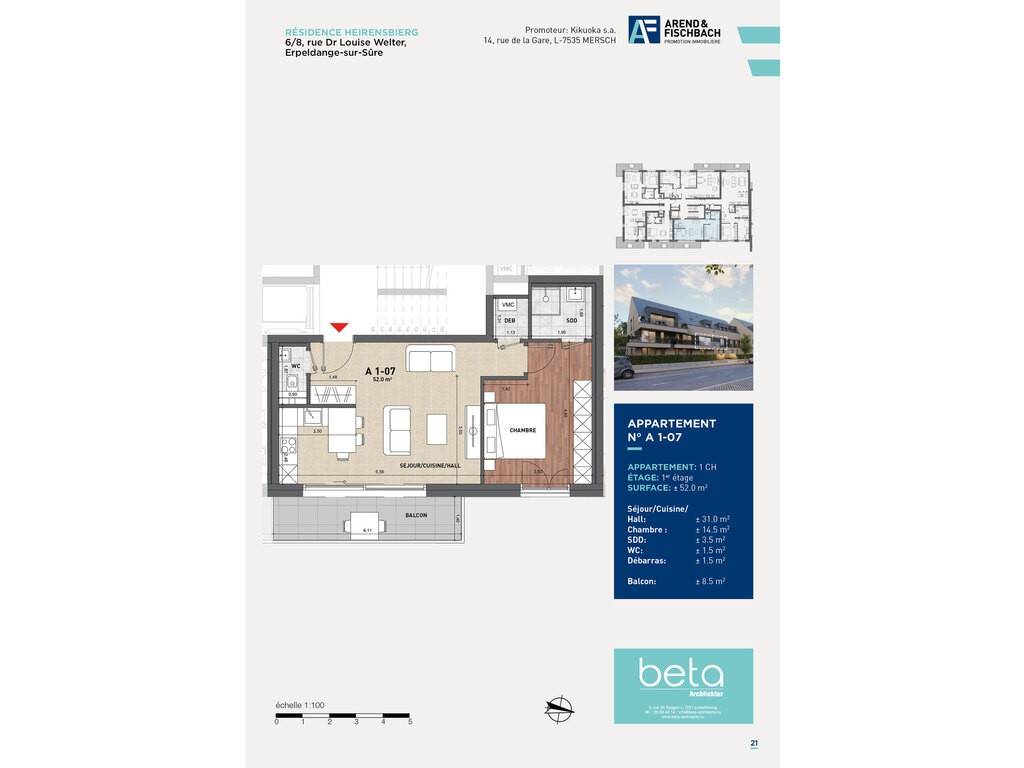 La résidence « HEIRENSBIERG » se situe à Erpeldange- sur-Sûre, 6/8, rue Dr Louise Welter dans le nouveau lotissement « In der mittelsten Gewan ». Elle sera implantée sur un terrain de 28,58 ares.