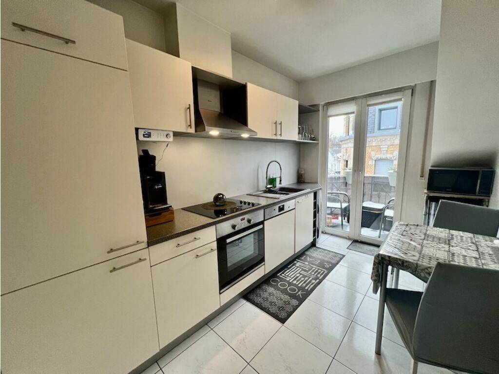 Entrance hall with built-in cabinets (+-8.71m2), very bright living room (+-20m2), equipped independent kitchen (2015 / +-8m2 / Value 15,000 Euros) with access to terrace (+-2m2 / North-East exposure), storage room (+-2m2), shower room (+-6m2), 2 bedrooms (+-11.38m2 / 12.47m2).
