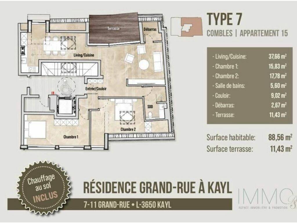 - Surface habitable de 88,56m2