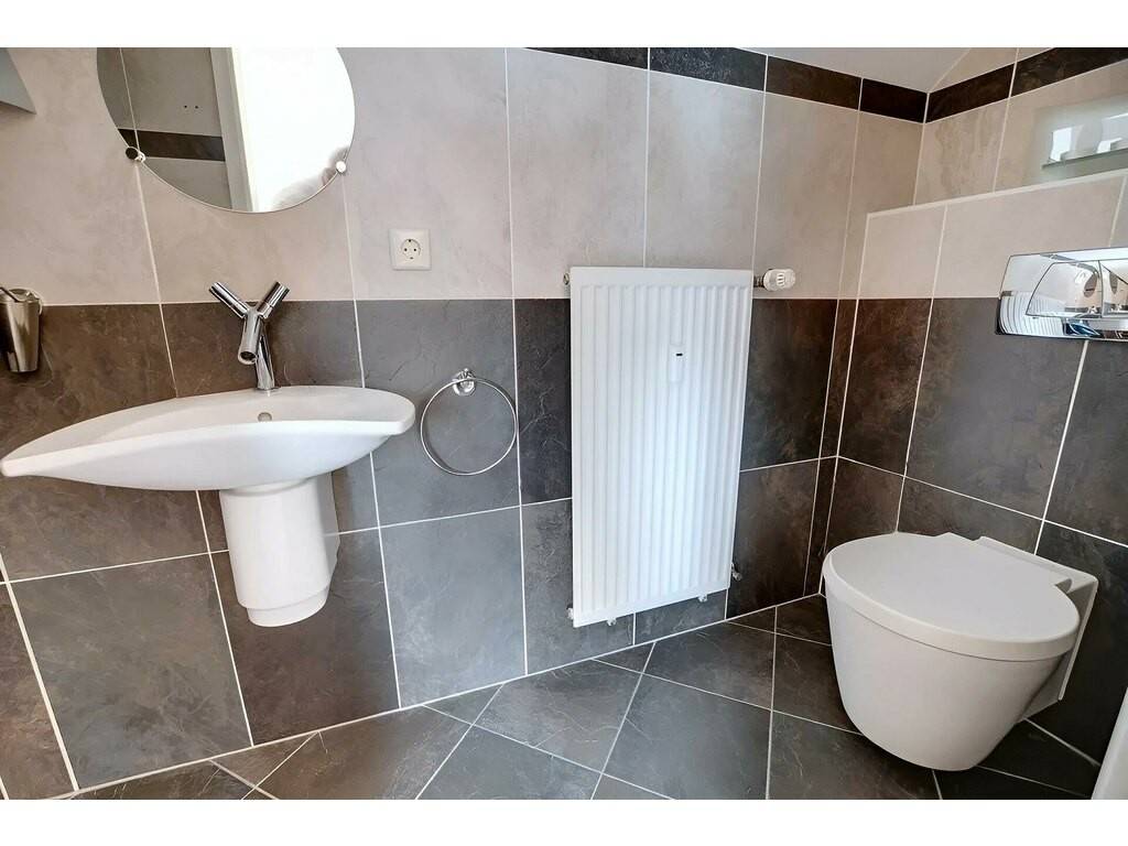 À l'étage, le grenier a été aménagé en partie habitable et représente 55,26 m² supplémentaires. Cet espace comprend une deuxième chambre à coucher ainsi qu'une salle de douche avec WC, apportant un réel confort et une belle flexibilité d'usage.