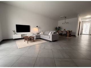 Au rez-de-chaussée : une entrée couloir avec placards, un salon -séjour de 35,69m2 avec accès à l'extérieur, une cuisine semi ouverte équipée (plaques de cuisson, four, hotte et lave vaisselle), une buanderie ainsi qu'un wc.