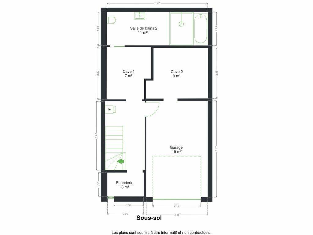 Un espace polyvalent comprenant un garage, une salle de bain, un local technique ainsi que des zones de rangement, venant compléter les prestations de la maison.