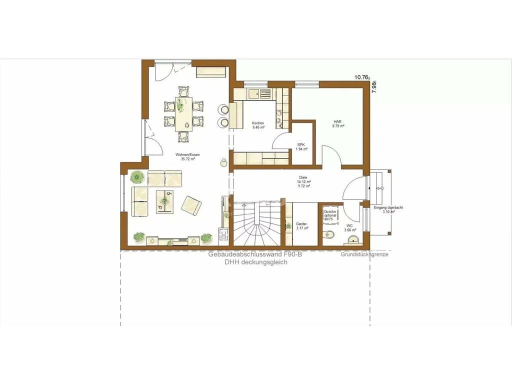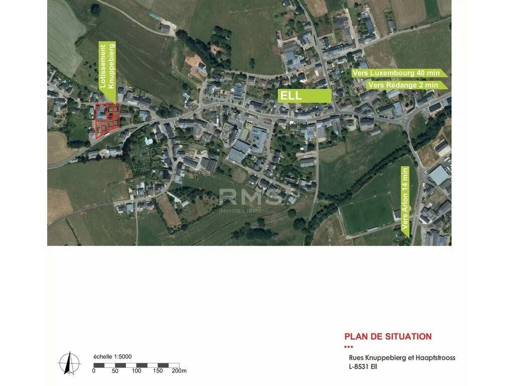 New eco-responsible, sustainable Class A or A+ wood-frame buildings in a pretty little development of 6 semi-detached houses in ELL/Redange. 6 plots from 3.79 ares to 5.11 ares (2 plan variants 128 m2 and 136 m2 with extra charge).