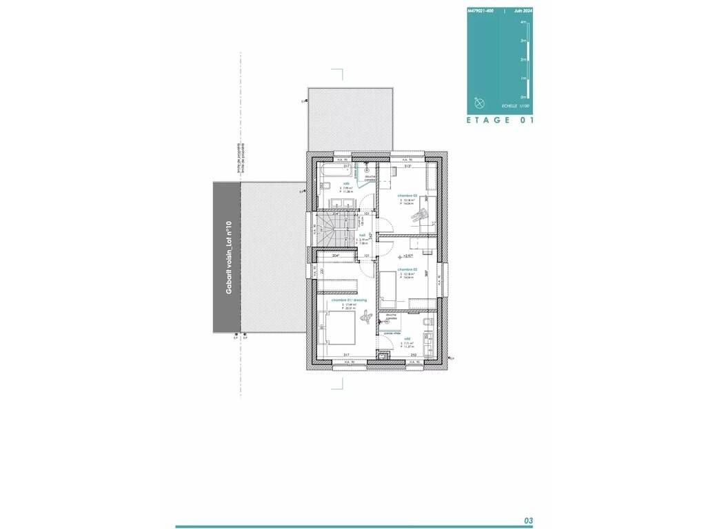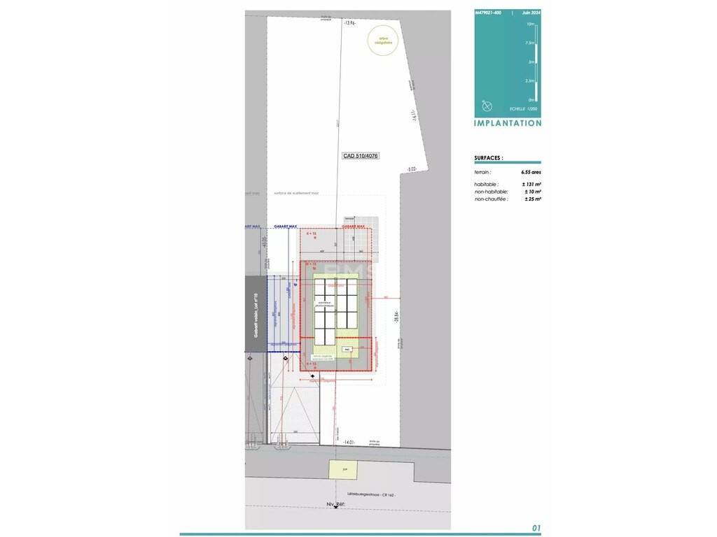 LOT 9: single-family house attached by the garage on a 6.55 ares plot with a living area of +/- 131 m2 and a total area of +/-166 m2 comprising: