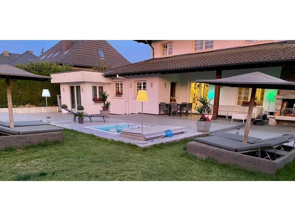 The living areas are distinguished by their generous proportions and abundant natural light. The spacious living/dining room, with direct access to an elegant and fully functional open-plan kitchen, provides an ideal setting for entertaining. Large floor-to-ceiling windows flood the house with natural light and allow you to fully enjoy, in every season, the beautifully landscaped garden and its wellness area.