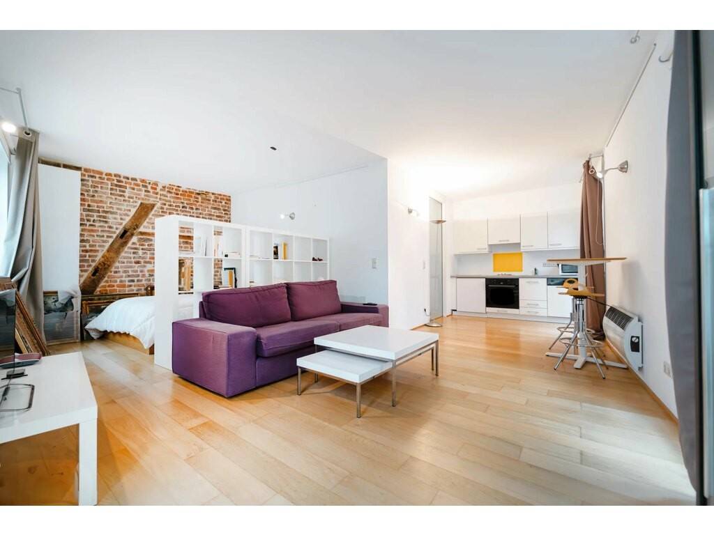 The studio has an area of approximately 50 m² and is located on the 3rd floor of a picturesque building. It is fully furnished and consists of the following: