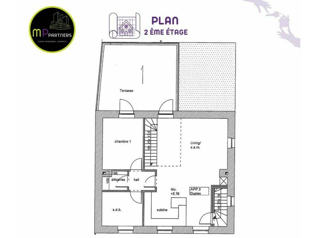 MP Partners presents this charming and spacious duplex apartment of approximately 110 m² of living space, with a beautiful terrace, ideally located on the 2nd floor of a small, 3-unit building (no elevator). **Be sure to watch the YouTube video** It comprises: - Large, bright living room with an open-plan, fully equipped kitchen of approximately 47 m² - Large bedroom of approximately 15 m² - Bathroom with toilet, bathtub, and shower Upstairs: - Night hall - 2 attic bedrooms of approximately 12 m² each The apartment's advantages: - No work required - Tastefully furnished - Large terrace - 1 indoor and 1 outdoor parking space Nearby: Preschool, "Bidibul" daycare center in Bascharage, "OP" after-school care center ACKER **.